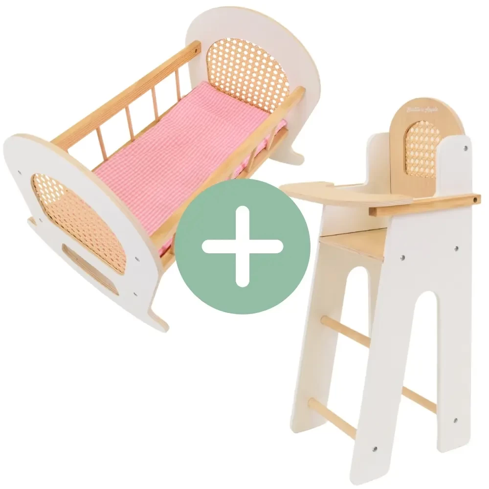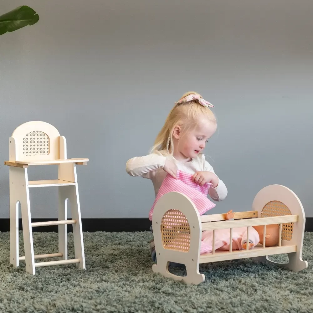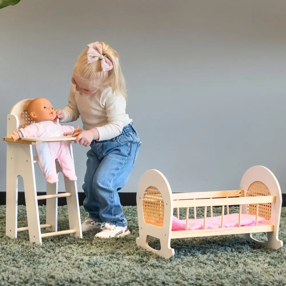 Puppenset mit Stuhl und Wiege Rattan
